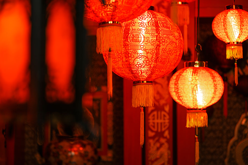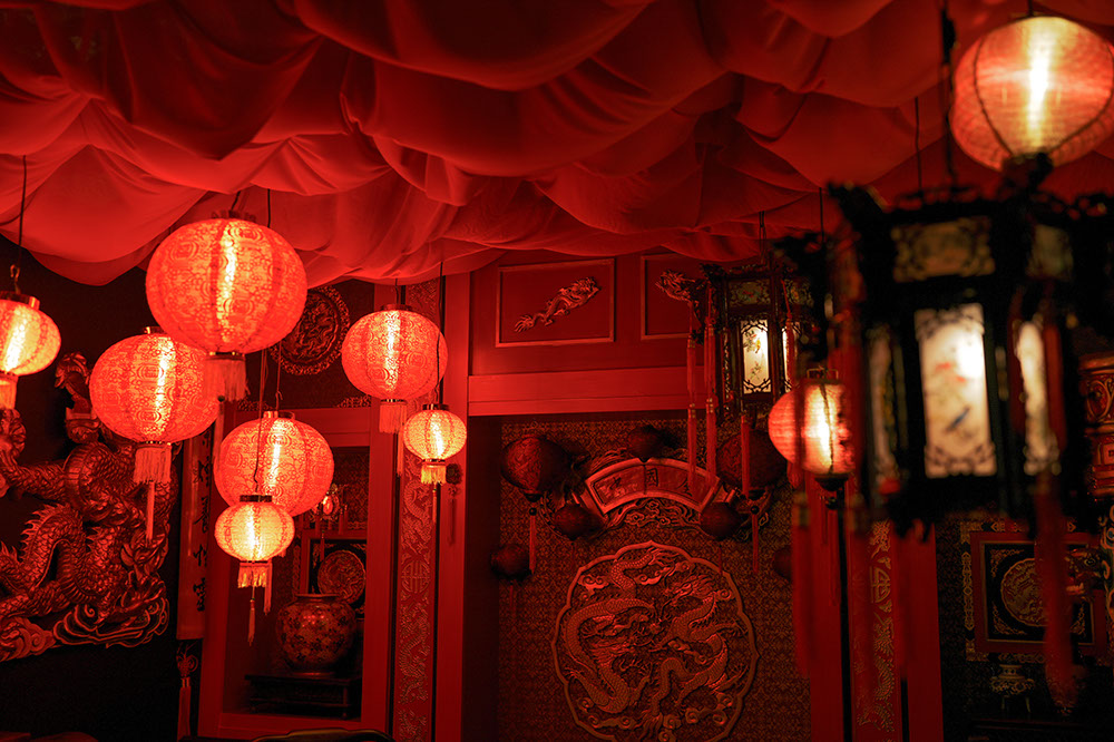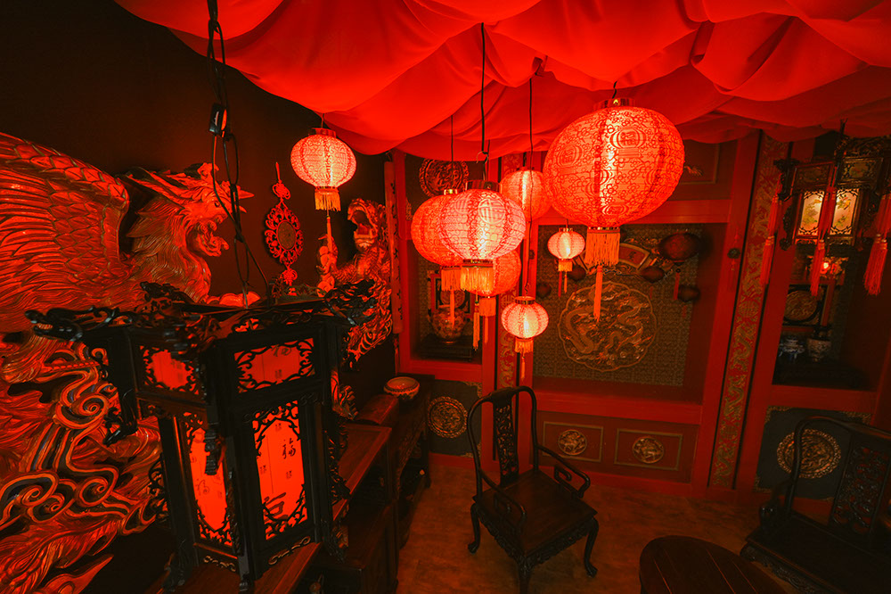 沢山のランタンに囲まれた本格的な中華スタイルのブース