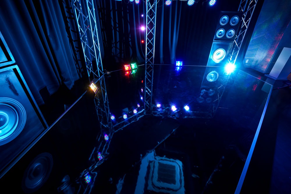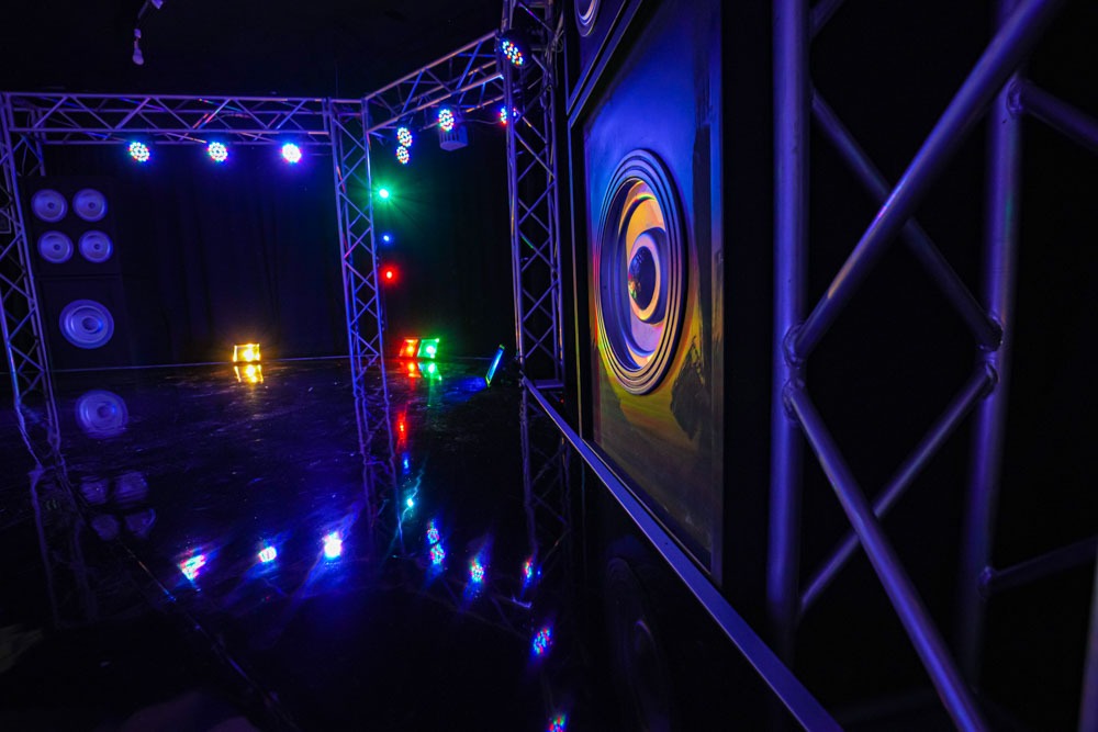 ステージには段差があり本格的なライブーシーンの撮影が出来るブース。